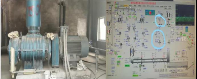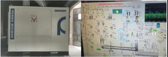 朔州金圓水泥最早使用的是羅茨風(fēng)機(jī),通過長(zhǎng)期的監(jiān)測(cè)數(shù)據(jù)對(duì)比發(fā)現(xiàn),羅茨風(fēng)機(jī)運(yùn)行平均壓力在27kPa時(shí),中控電流244.9A,功率149KW,滿頻率運(yùn)行時(shí)噪音值110分貝。朔州金圓水泥為了降低企業(yè)的能耗,對(duì)原來的羅茨風(fēng)機(jī)進(jìn)行了撤換,更換為濰坊富源增壓器有限公司(以下簡(jiǎn)稱“濰坊富源”)生產(chǎn)的空氣懸浮離心鼓風(fēng)機(jī)。