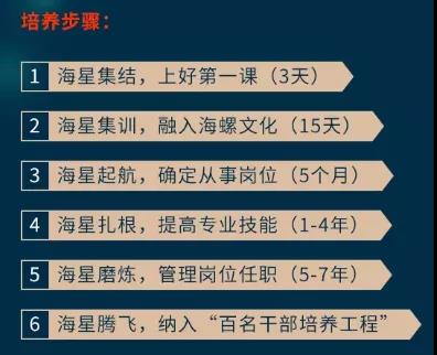“海螺水泥明日之星培養(yǎng)計劃”,以每年各區(qū)域招聘引進的高校畢業(yè)生為主,重點在國內(nèi)各區(qū)域子公司實施,以形成每個公司各專業(yè)至少培養(yǎng)儲備一名中層后備年輕人才為目標。“海星計劃”培養(yǎng)對象,以當年各區(qū)域統(tǒng)招高校應屆本科畢業(yè)生為主。
