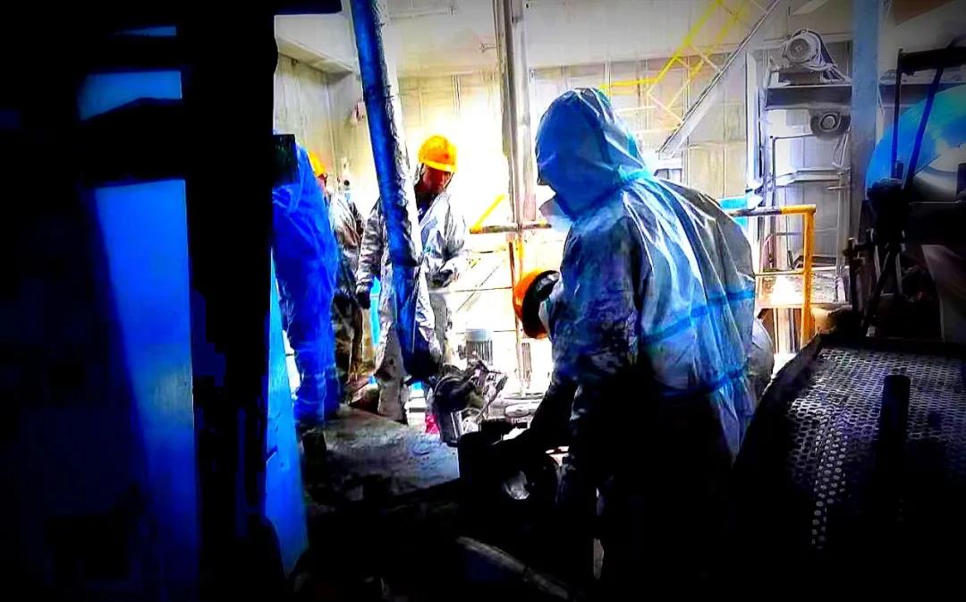 搶修過程中,眾城分廠三個搶修小分隊同時開工,齊心奮戰(zhàn)。為了加快檢修進度,提升檢修質量,該分廠安排人員將午餐、晚餐送至施工現場,為檢修工作提供了保障。同時,公司領導班子帶領紀委工作人員到現場監(jiān)督檢查,重點檢查落實急難危重任務時干部跟班帶班情況,保全部、生產部、眾城分廠領導同時在現場對檢修進行指揮、調度。