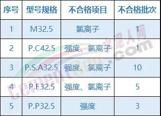 經(jīng)檢測,共檢出不合格水泥20批次,不合格率高達(dá)23.5%。其中抗壓、抗折強(qiáng)度不合格13個批次,氯離子含量超標(biāo)不合格10個批次,不合格項目及批次為: