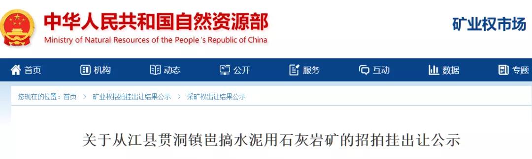 日前,自然資源部網(wǎng)站發(fā)布“從江縣貫洞鎮(zhèn)岜搞水泥用石灰?guī)r礦采礦權(quán)出讓成交結(jié)果公示”。公示顯示,貴州從江明達水泥有限公司以3000萬元拍得一處水泥用石灰?guī)r采礦權(quán)。
