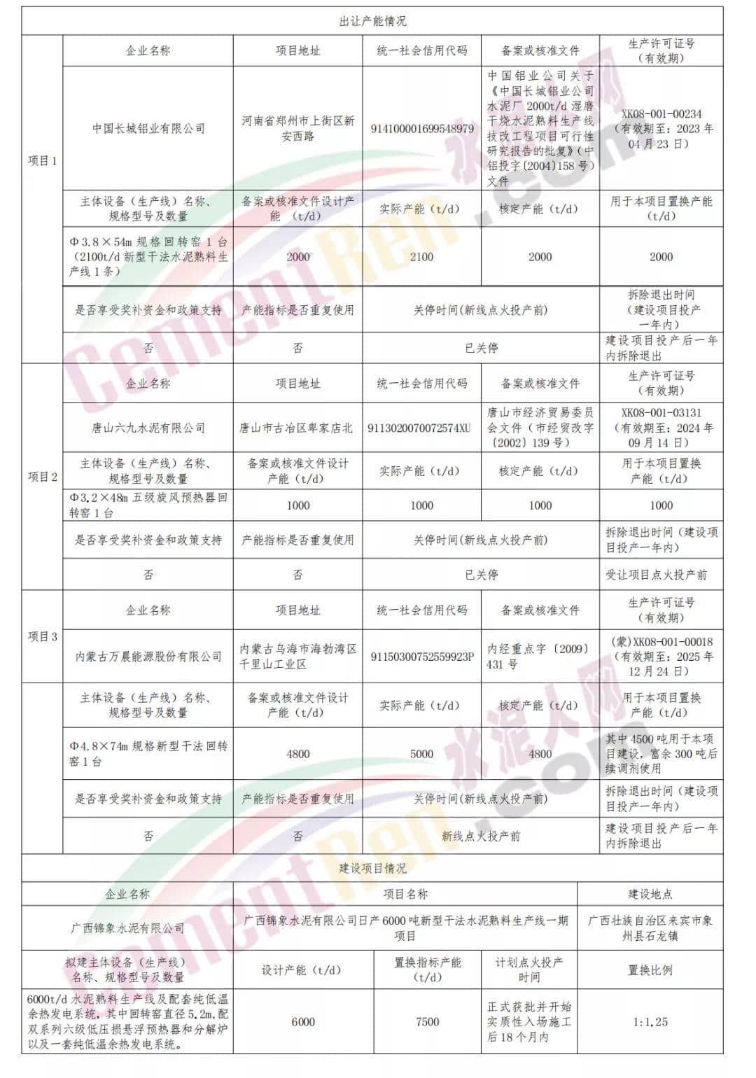 對廣西錦象水泥有限公司日產(chǎn)6000噸新型干法水泥熟料生產(chǎn)線一期項目產(chǎn)能置換方案(詳見附件1)的合法性、合規(guī)性,置換指標(biāo)的真實性情況聽取各方面的意見和建議。