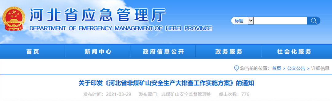 特別是要聚焦當前突出問題和重點工作,按照《河北省應急管理廳關(guān)于貫徹落實全國礦山安全生產(chǎn)視頻會議精神進一步加強當前非煤礦山安全生產(chǎn)工作的緊急通知》(冀應急非煤〔2021〕20號)要求,