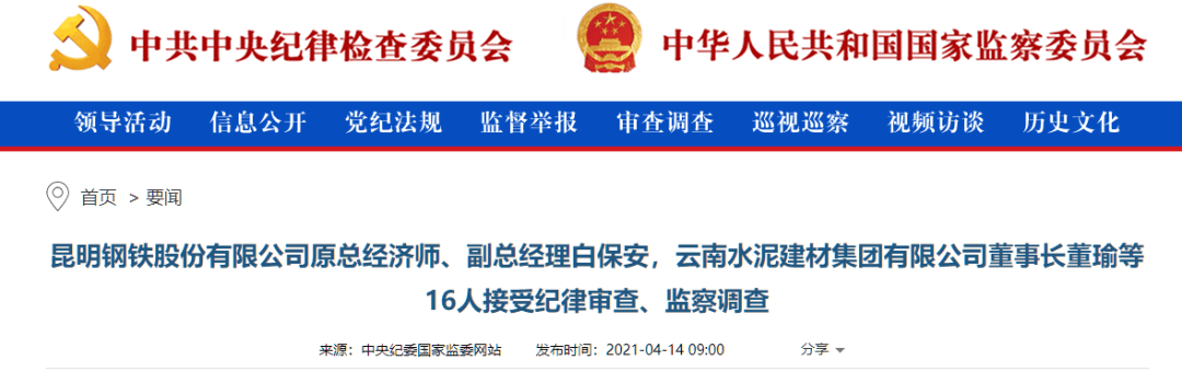4月14日中央紀委國家監(jiān)委網(wǎng)站發(fā)布要聞消息:昆鋼黨委書記、董事長、云南水泥建材集團有限公司董事長董瑜等多人接受審查調(diào)查。詳情如下: