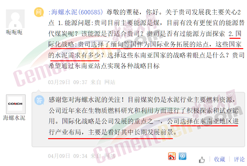 海螺水泥上市公司回復(fù)稱:國際化戰(zhàn)略是公司發(fā)展的重點之一,公司選擇在東南亞地區(qū)進行產(chǎn)業(yè)布局,主要是看好其中長期發(fā)展前景。