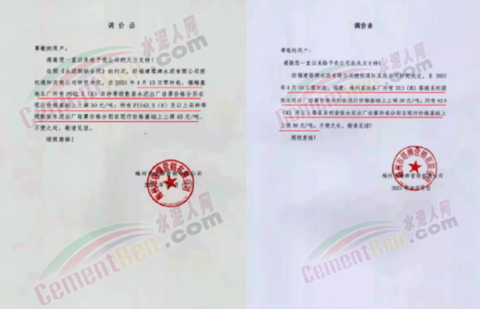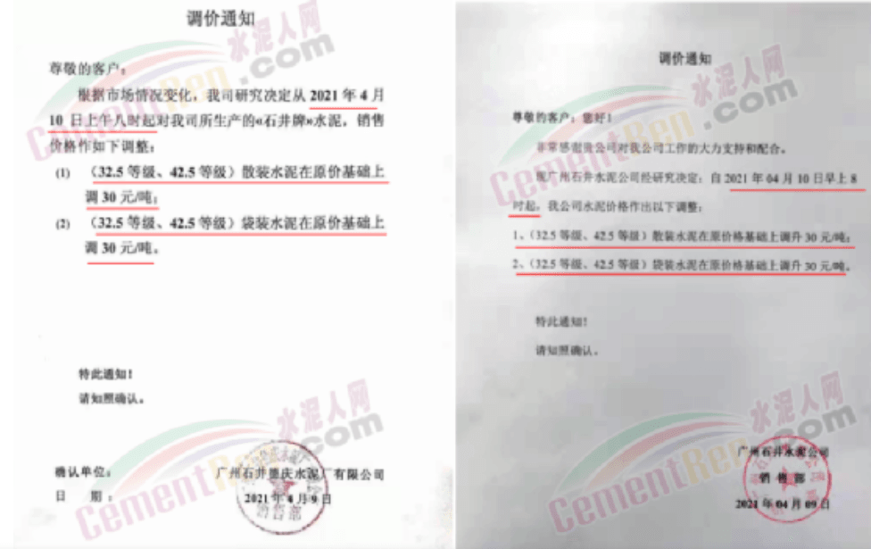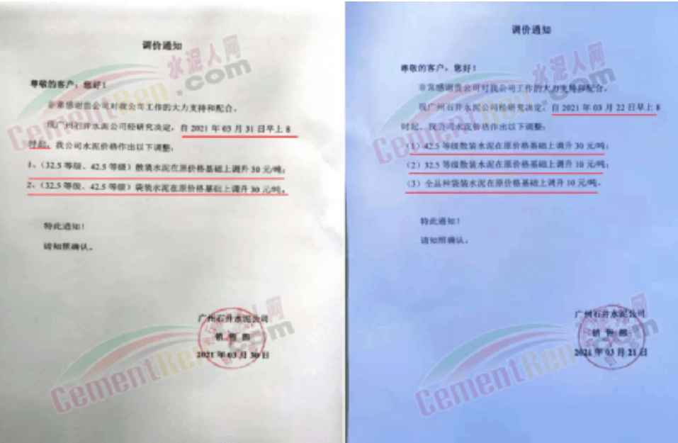 根據(jù)當前市場行情,我公司于2021年3月26日8:00時,對M32.5級袋裝水泥上調(diào)20元/噸,對PO42.5級袋裝水泥價格上調(diào)30元/噸,特此通知!