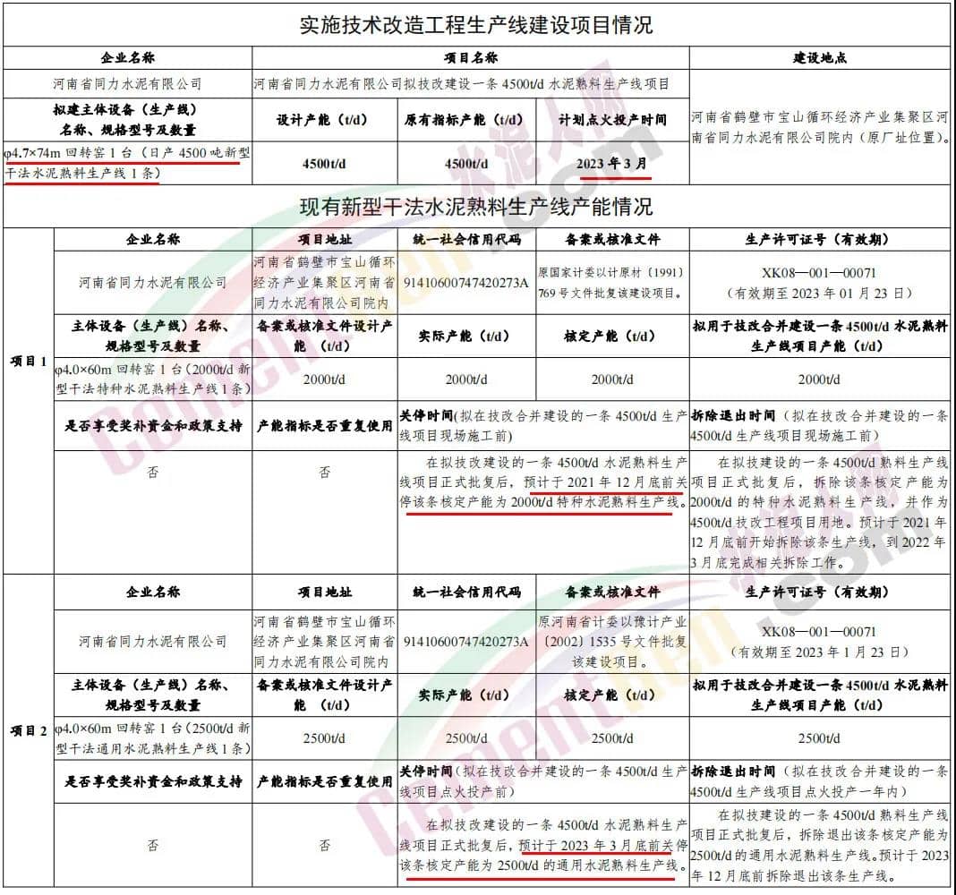 日前,河南省工業(yè)和信息化廳發(fā)布《關(guān)于河南省同力水泥有限公司擬技改建設(shè)一條日產(chǎn)4500噸水泥熟料生產(chǎn)線項目有關(guān)產(chǎn)能情況的公示》稱,河南省同力水泥有限公司擬通過通過“拆二合一”建設(shè)一條日產(chǎn)4500噸水泥熟料生產(chǎn)線。