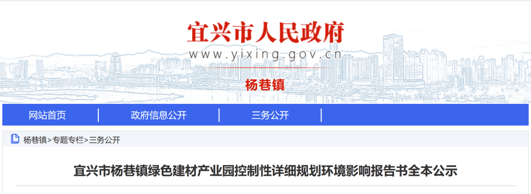 日前,江蘇宜興市人民政府網(wǎng)站發(fā)布《宜興市楊巷鎮(zhèn)綠色建材產(chǎn)業(yè)園控制性詳細(xì)規(guī)劃環(huán)境影響報告書》(以下簡稱報告書)。