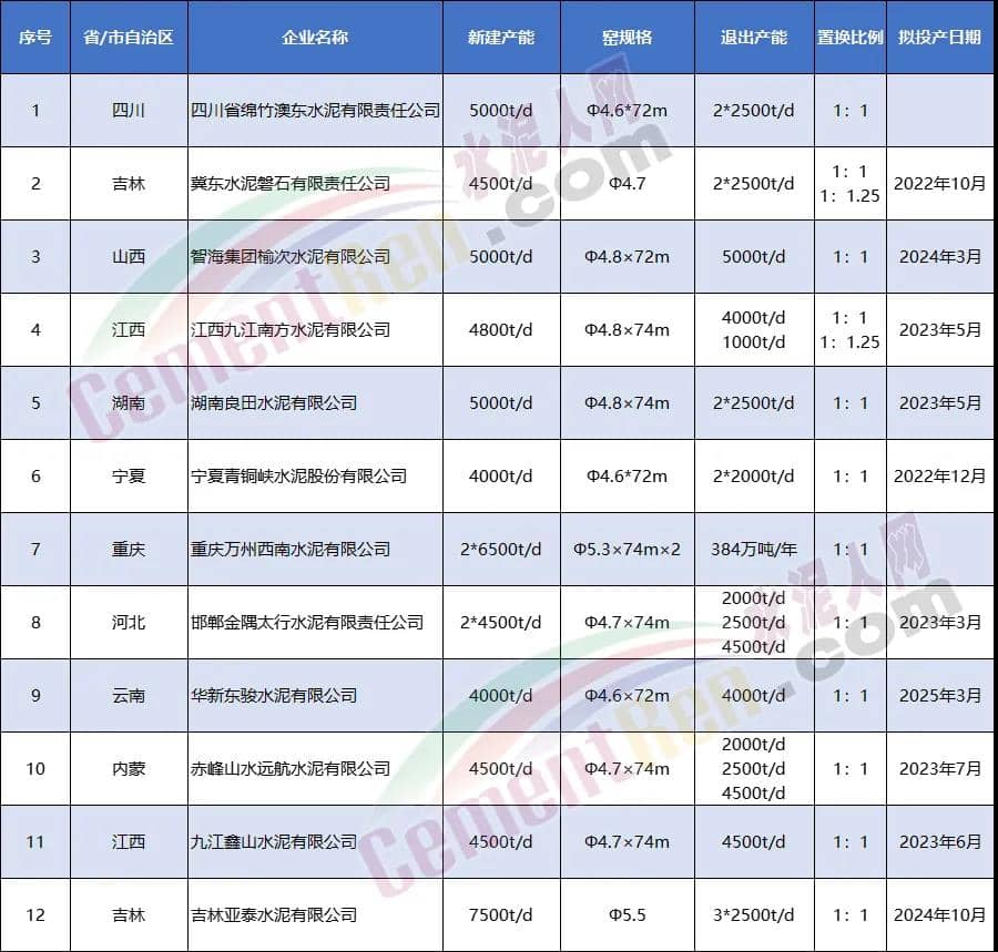 據(jù)水泥人網(wǎng)了解,近兩年通過對現(xiàn)有生產(chǎn)線搬遷或技改不擴大產(chǎn)能按1:1比例拆舊建新的項目達十多個。涉及吉林、內(nèi)蒙、河北、山西、四川、重慶、寧夏、內(nèi)蒙、云南、湖南、江西等 10多個省市自治區(qū)2124萬噸產(chǎn)能,涉及國內(nèi)熟料產(chǎn)能前十強企業(yè)金隅冀東、南方水泥、西南水泥、華新水泥、山水水泥、亞泰水泥等水泥集團企業(yè)。