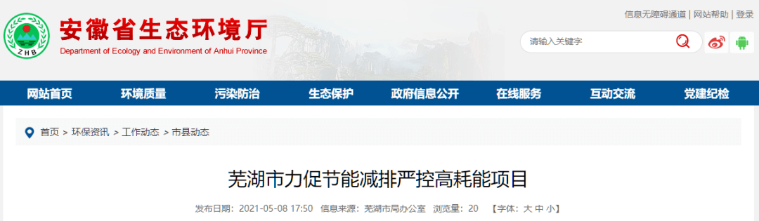 日前,水泥人網(wǎng)自安徽省生態(tài)環(huán)境廳獲悉,近日,蕪湖市2019至2020年新增10個高耗能項(xiàng)目均通過省發(fā)改委合理用能評估。