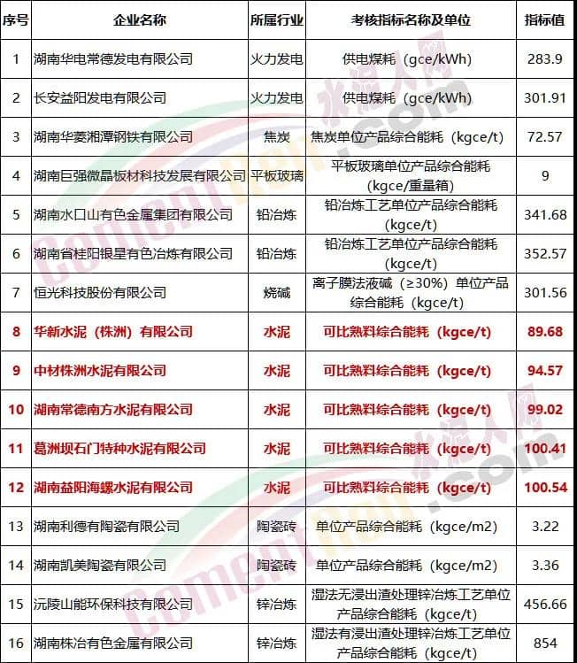 5月7日,湖南省工信廳發(fā)布《第一批湖南省重點工業(yè)行業(yè)能效頭雁入圍企業(yè)名單》其中包括生產(chǎn)地址位于湖南的華新水泥(株洲)、中材株洲水泥、湖南常德南方水泥、葛洲壩石門特種水泥、湖南益陽海螺水泥等5家水泥企業(yè)。