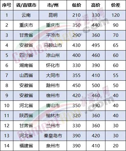 從各個省自治區(qū)不同企業(yè)報價差距來看,價差從40~260元/噸不等,其中內(nèi)蒙、西藏、云南、河南、江西、黑龍江、山西、浙江、江蘇等21個省、自治區(qū)價差均在100元/噸以上。