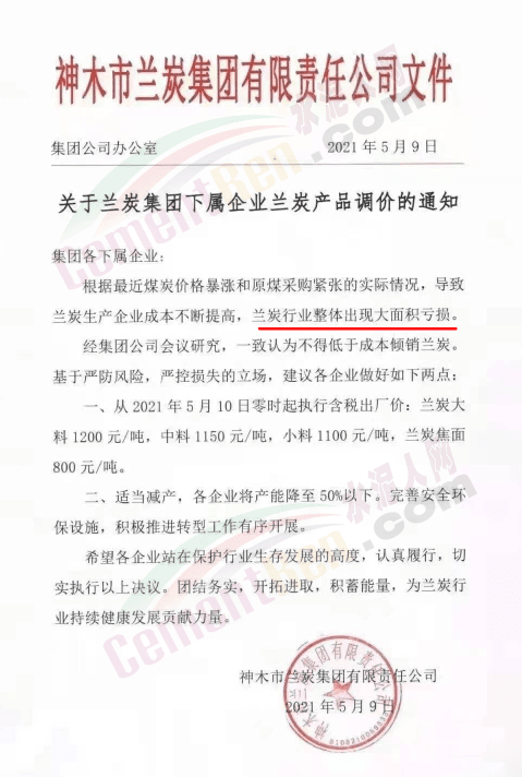 神木市蘭炭集團(tuán)有限責(zé)任公司通知,由于煤炭?jī)r(jià)格暴漲和原煤采購(gòu)緊張的實(shí)際情況,導(dǎo)致蘭炭生產(chǎn)企業(yè)成本不斷提高,蘭炭行業(yè)出現(xiàn)大面積虧損。