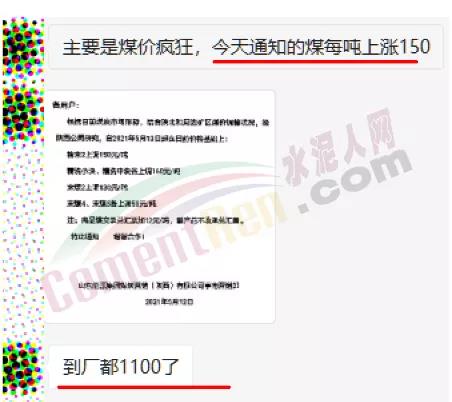河南某水泥企業(yè)采購(gòu)人員對(duì)水泥人網(wǎng)表示,12日收到通知,煤價(jià)再漲150元/噸,到廠價(jià)都1100元/噸了。