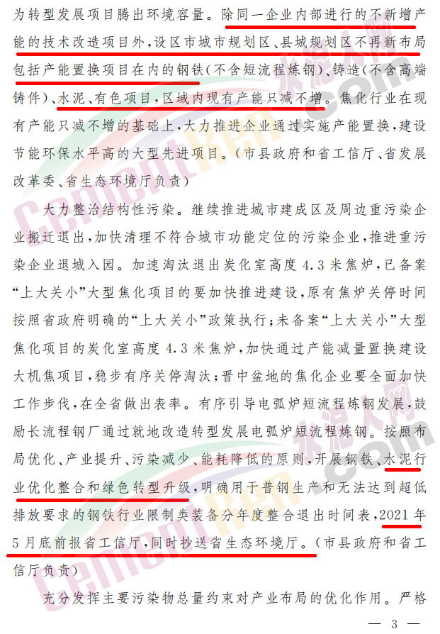 《行動(dòng)計(jì)劃》提到,山西省將在產(chǎn)業(yè)結(jié)構(gòu)和布局調(diào)整上再發(fā)力,強(qiáng)化源頭管控。嚴(yán)格落實(shí)“三線一單”生態(tài)環(huán)境分區(qū)管控體系,嚴(yán)守生態(tài)保護(hù)紅線,嚴(yán)格控制高碳、高耗能、高排放項(xiàng)目建設(shè),為轉(zhuǎn)型發(fā)展項(xiàng)目騰出環(huán)境容量。除同一企業(yè)內(nèi)部進(jìn)行的不新增產(chǎn)能的技術(shù)改造項(xiàng)目外,設(shè)區(qū)市城市規(guī)劃區(qū)、縣城規(guī)劃區(qū)不再新布局包括產(chǎn)能置換項(xiàng)目在內(nèi)的鋼鐵、鑄造、水泥等項(xiàng)目,區(qū)域內(nèi)現(xiàn)有產(chǎn)能只減不增。
