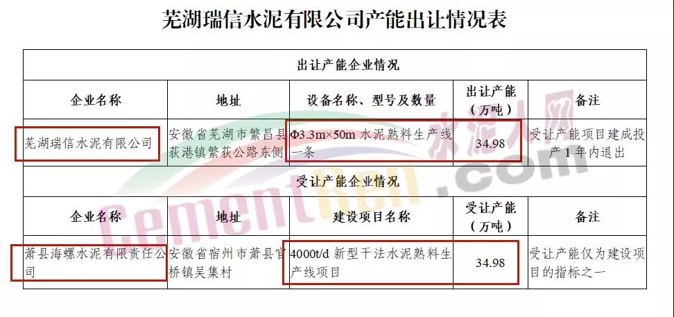 附件:蕪湖瑞信水泥有限公司產(chǎn)能出讓情況表.doc