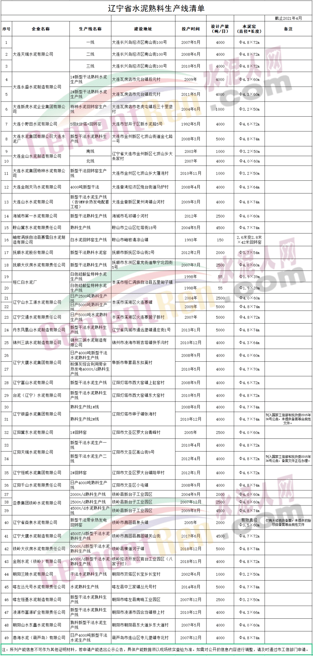 日前,遼寧省工業(yè)和信息化廳發(fā)布《遼寧省工業(yè)和信息化廳關于更新水泥熟料及平板玻璃生產線清單的公示》公示顯示,截止到2021年4日,遼寧省共有49條水泥熟料生產線,合計產能4942.8萬噸。
