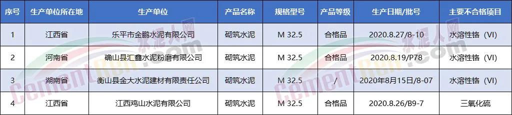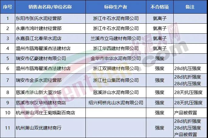 此前,浙江省市場監(jiān)督管理局發(fā)布《關(guān)于2020年流通領(lǐng)域?qū)嶓w店產(chǎn)品質(zhì)量監(jiān)督抽查情況的通報》中顯示不合格的13個批次水泥產(chǎn)品中包括11個批次砌筑水泥M32.5產(chǎn)品,不合格項目涉及強(qiáng)度和氯離子含量。