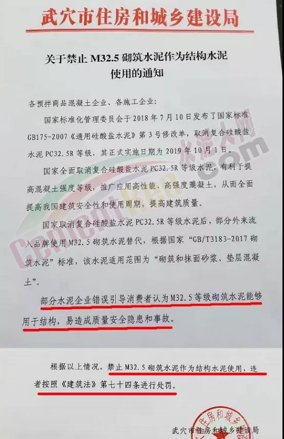 住建部門通知,禁止 M32.5 砌筑水泥作為結(jié)構(gòu)水泥使用