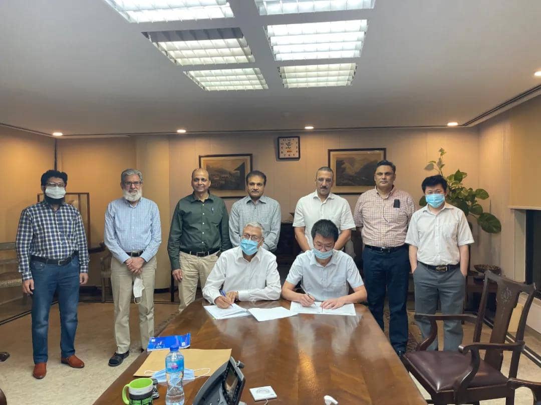 DG水泥廠總經(jīng)理Raza Mansha、技術(shù)總監(jiān)Arif Bashir、中材節(jié)能國際工程分公司市場營銷部副部長王建峰、市場經(jīng)理劉庚等相關(guān)人員參加了上述兩個項目的簽約儀式。
