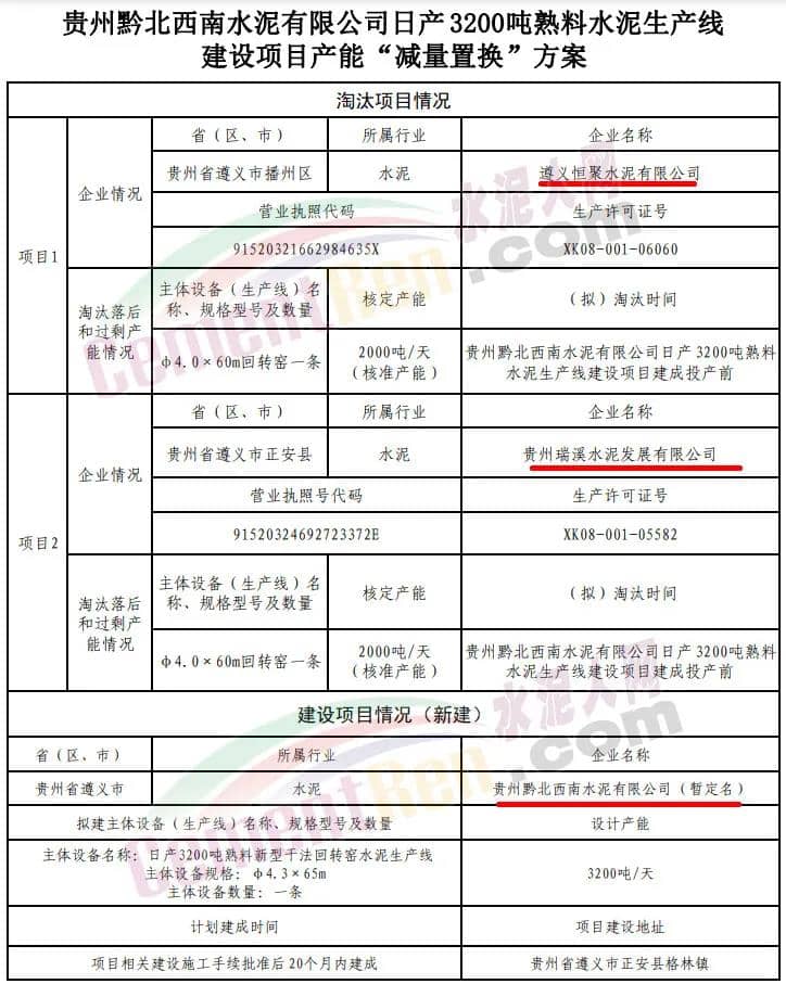 據(jù)水泥人網(wǎng)了解,2018年12月下旬,貴州省工業(yè)和信息化廳發(fā)布關(guān)于關(guān)于貴州黔北西南水泥有限公司日產(chǎn)3200噸 熟料水泥生產(chǎn)線建設(shè)項(xiàng)目產(chǎn)能“減量置換”方案的公示提到,貴州黔北西南水泥有限公司通過減量置換方式新建一條3200t/d熟料水泥生產(chǎn)線。