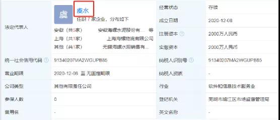公開消息顯示,安徽?;酃?yīng)鏈科技有限公司為安徽海螺水泥股份有限公司控股企業(yè),法定代表人為海螺水泥總經(jīng)理助理、董秘虞水。