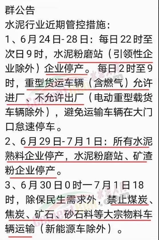 日前,唐山一家水泥企業(yè)發(fā)通知稱,按照環(huán)保部門要求:6月24日至6月29日零時(shí)執(zhí)行二級響應(yīng)。6月29日零時(shí)至7月1日18時(shí)參照紅色預(yù)警執(zhí)行,環(huán)保部門派專業(yè)組到唐山督導(dǎo)檢查!工廠積極響應(yīng),6月28日晚8時(shí)起停產(chǎn)放假,請用戶提前做好安排,不再另行通知。