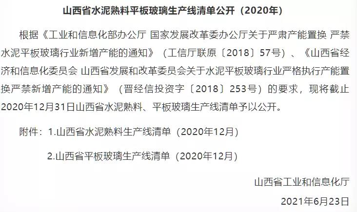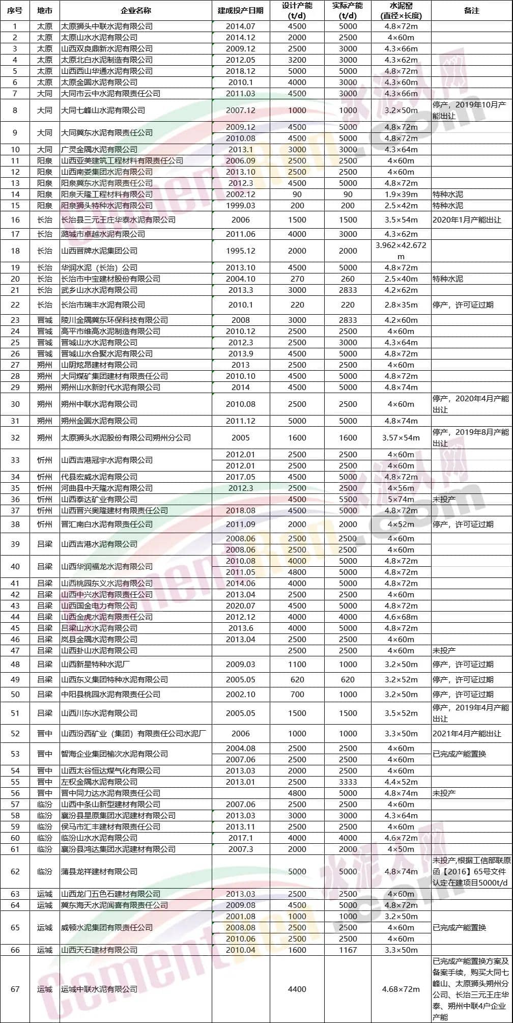 日前,山西省工信廳將截止至2020年12月31日的水泥熟料生產(chǎn)線清單予以公開。