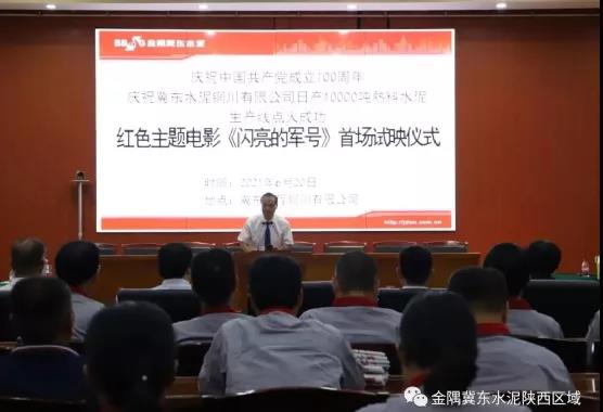 弘揚(yáng)照金精神,傳承紅色基因,支持文化事業(yè),助推國企發(fā)展。2021年6月20日上午,紅色主題電影《閃亮的軍號》首場試映儀式在冀東水泥銅川有限公司舉行。本次試映,旨在向中國共產(chǎn)黨成立100周年獻(xiàn)禮,慶祝冀東水泥銅川有限公司惠塬工業(yè)園日產(chǎn)10000噸熟料水泥生產(chǎn)線即將帶料試生產(chǎn)。