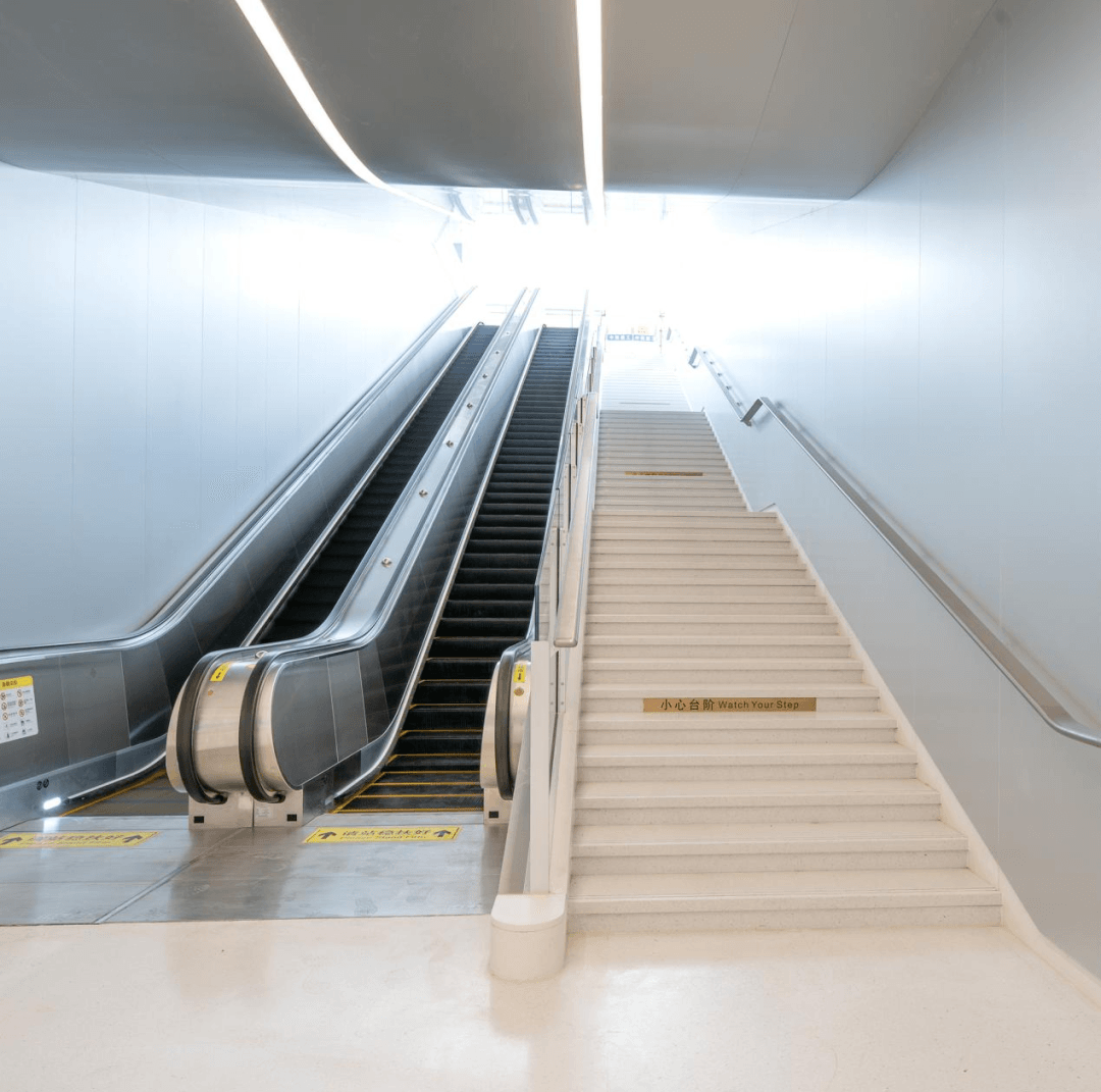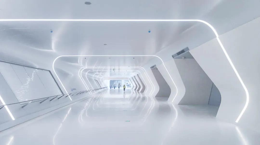 進(jìn)站通道風(fēng)格簡潔,地面采用到華潤水泥人造石,整體設(shè)計極具未來感。