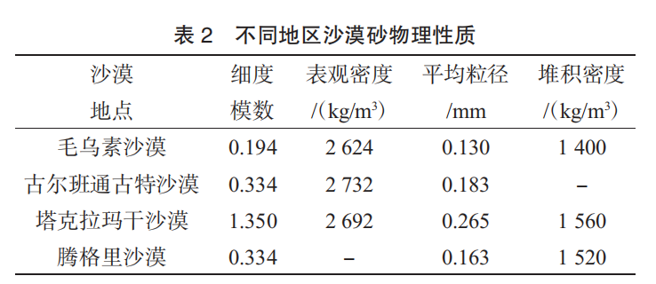 我國不同沙漠地區(qū)沙漠砂物理性質(zhì)