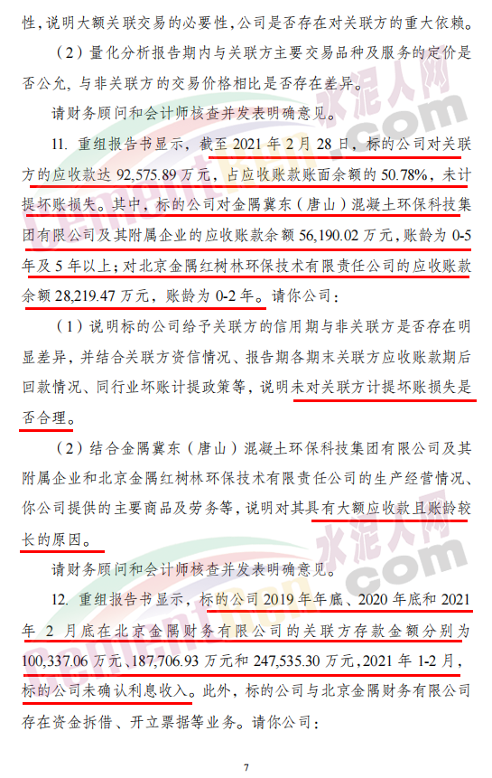 其中,標(biāo)的公司對(duì)金隅冀東(唐山)混凝土環(huán)??萍技瘓F(tuán)有限公司及其附屬企業(yè)的應(yīng)收賬款余額56,190.02萬(wàn)元,賬齡為0-5年及5年以上;對(duì)北京金隅紅樹(shù)林環(huán)保技術(shù)有限責(zé)任公司的應(yīng)收賬款余額28,219.47萬(wàn)元,賬齡為0-2年。請(qǐng)公司: