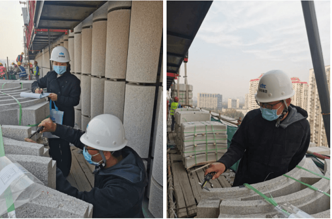 在近500個日日夜夜里,石材中心干部職工團結一心、埋頭苦干、攻堅克難,跨越福建省、貴州省、四川省、山東省、湖北省、天津市6個省市自治區(qū),進駐礦山、進駐石材加工廠、進駐施工現(xiàn)場,及時獲取一手資料,組織線上線下會議10余次,協(xié)調30多個相關單位進行信息溝通,完成石材質控總面積60000平方米,出具抽檢報告58批次,監(jiān)造記錄166批次,質控工作貫穿石材應用的全過程,最終迎來了項目的圓滿竣工。國檢集團不辱使命,用專業(yè)的技術服務贏得了各方的高度認可。
