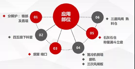 為解決水泥行業(yè)長(zhǎng)期以來(lái)的困擾,水泥人網(wǎng)經(jīng)過(guò)長(zhǎng)期的市場(chǎng)調(diào)研,發(fā)現(xiàn)微晶產(chǎn)品的應(yīng)用在緩解水泥預(yù)分解系統(tǒng)結(jié)皮的問(wèn)題上作用明顯。山東淄博乾沃工貿(mào)有限公司(以下簡(jiǎn)稱(chēng)“乾沃工貿(mào)”)是一家國(guó)內(nèi)最早研制微晶耐磨防結(jié)皮材料的企業(yè),專(zhuān)注于微晶新材研發(fā)多年,其生產(chǎn)的水泥窯專(zhuān)用微晶耐磨防結(jié)皮新材可應(yīng)用于水泥行業(yè)的煙室、篦冷機(jī)、預(yù)熱器、下料管、磨機(jī)內(nèi)襯、脫硝器內(nèi)襯、筒倉(cāng)內(nèi)襯等多個(gè)部位。具體如圖1
