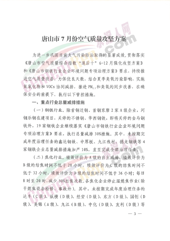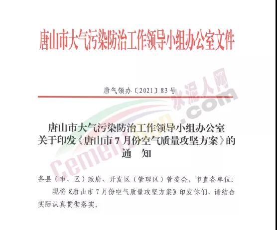 日前,唐山市大氣污染防治工作領(lǐng)導(dǎo)小組辦公室發(fā)布《唐山市7月份空氣質(zhì)量攻堅方案》要求水泥行業(yè)按要求減排停產(chǎn)。
