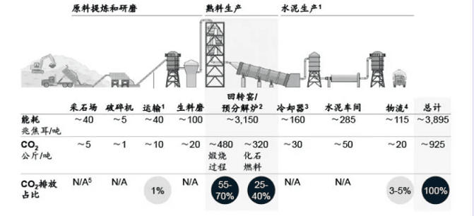 圖1.水泥生產(chǎn)全周期過程中的能耗和排放細(xì)分