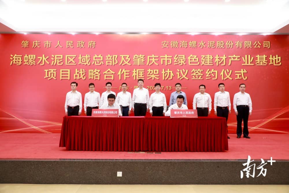 7月13日,肇慶市與安徽海螺水泥股份有限公司簽訂海螺水泥區(qū)域總部及肇慶市綠色建材產(chǎn)業(yè)基地項目戰(zhàn)略合作框架協(xié)議,雙方將在綠色建材產(chǎn)業(yè)等領(lǐng)域開展全面深化合作,共同打造國內(nèi)一流的新型建材領(lǐng)域科技創(chuàng)新和產(chǎn)業(yè)發(fā)展平臺。