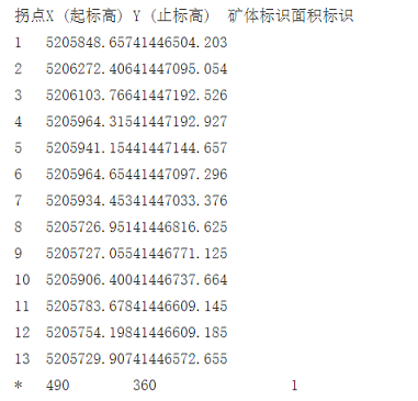 開采范圍:面積0.16平方千米,拐點(diǎn)坐標(biāo)如下(2000國家大地坐標(biāo)):