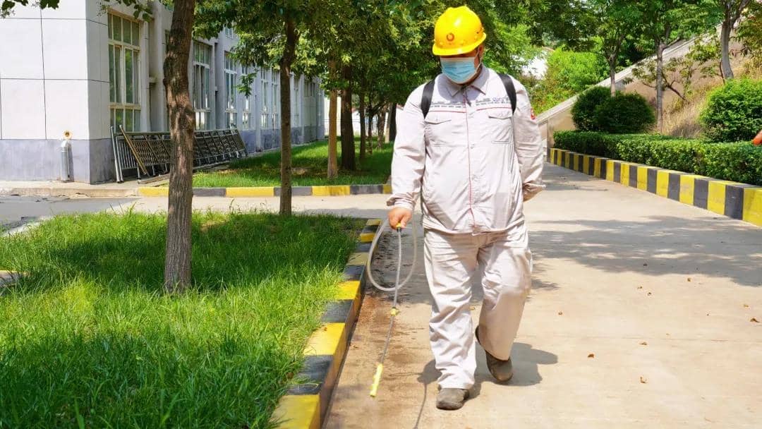 濟(jì)源中聯(lián)對低洼處綠化帶和下水道口地進(jìn)行消毒