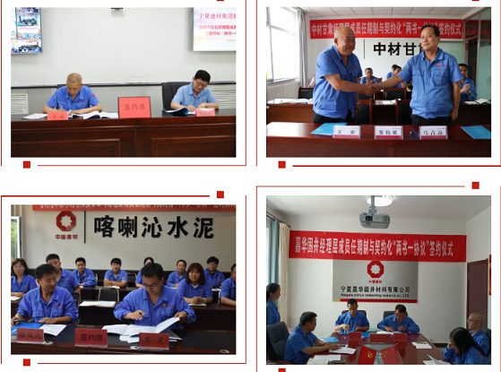 2021年7月28日,寧夏建材集團(tuán)股份有限公司舉行全級(jí)次企業(yè)經(jīng)理層成員任期制與契約化“兩書一協(xié)議”簽約儀式。公司董事長(zhǎng)尹自波、總裁王玉林以及其他經(jīng)理層副職人員、職能部室全體成員和所屬成員企業(yè)經(jīng)理層成員、中層以上管理人員參加了本次簽約儀式。