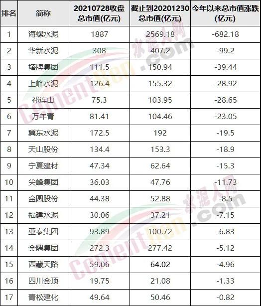 從上述數(shù)據(jù)可見,17家企業(yè)全部為下跌,共計蒸發(fā)超千億。僅海螺水泥一家企業(yè)就蒸發(fā)682億元,占整個水泥板塊約70%。