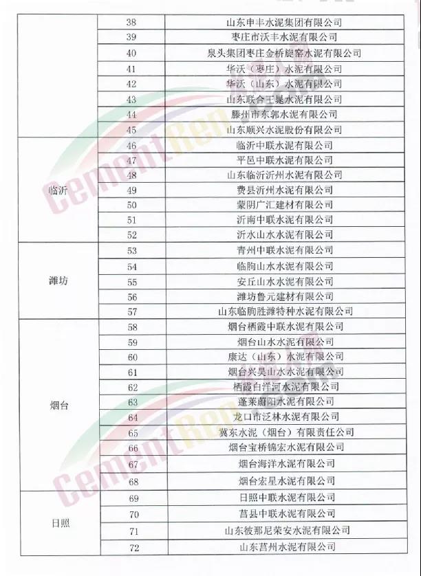 實(shí)施對象為山東省水泥熟料企業(yè)的熟料生產(chǎn)線,含特種熟料生產(chǎn)線和建通窯、不含山東魯北化工股份有限公司和山東匯泰再生資源有限公司的化工配套熟料生產(chǎn)線,名單共列出72家企業(yè)。