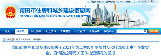 福州城鄉(xiāng)建設局《關于2021年第一季度預拌混凝土企業(yè)資質(zhì)動態(tài)核查情況的通報》