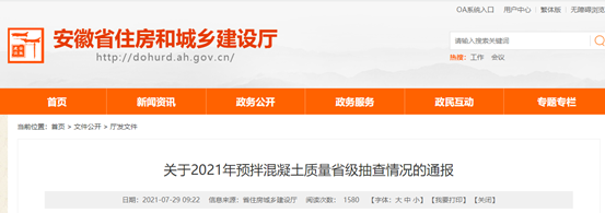安徽省住房和城鄉(xiāng)建設廳發(fā)布《關于2021年預拌混凝土質(zhì)量省級抽查情況的通報》
