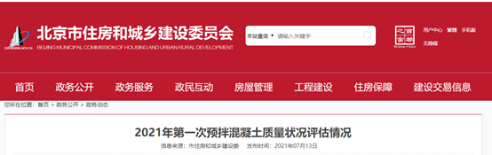 北京市住房和城鄉(xiāng)建設委員會發(fā)布《2021年第一次預拌混凝土質(zhì)量狀態(tài)評估情況》