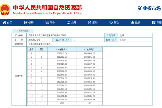 6月23日馬鞍山南方材料有限公司以70500萬元的價(jià)格競得了含山縣元沖礦區(qū)建筑石料用白云巖礦采礦權(quán)。