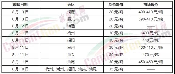 廣東多地兩輪上調(diào),市場報(bào)價(jià)400-470元/噸