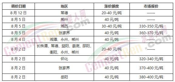 最高漲100元/噸以上,湖南水泥價(jià)格破突400元/噸