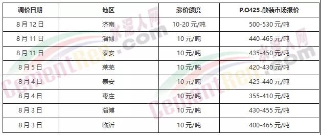 多家企業(yè)上調(diào)價(jià)格50元/噸,水泥價(jià)格仍在400元/噸