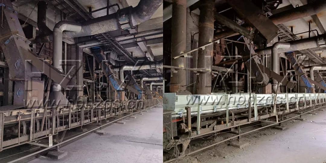 淮北相淮水泥導(dǎo)料槽改造前(左)后(右)對(duì)比